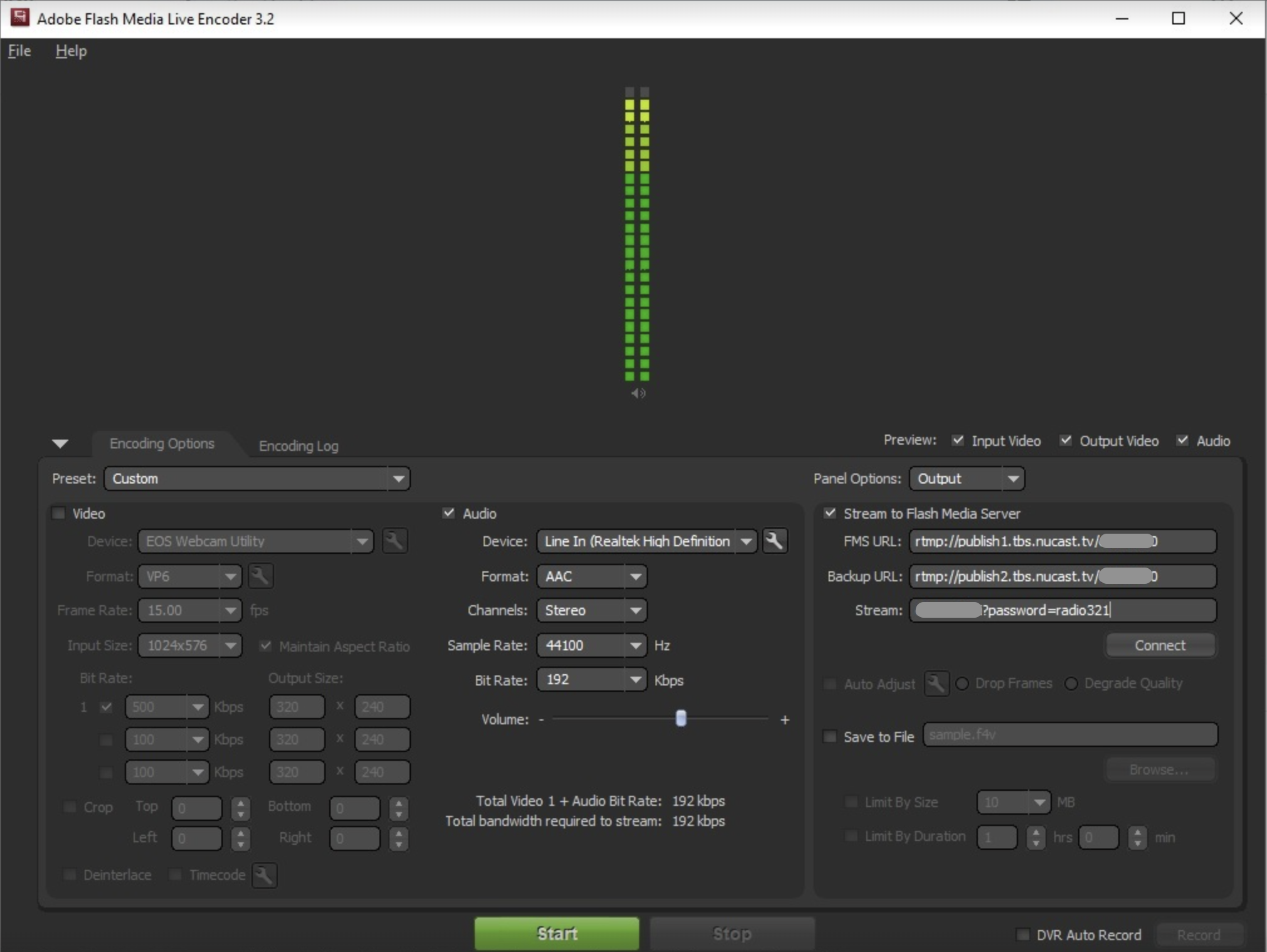 Here you can find configuration screen for one of the most popular streaming software, Flash Media Live Encoder